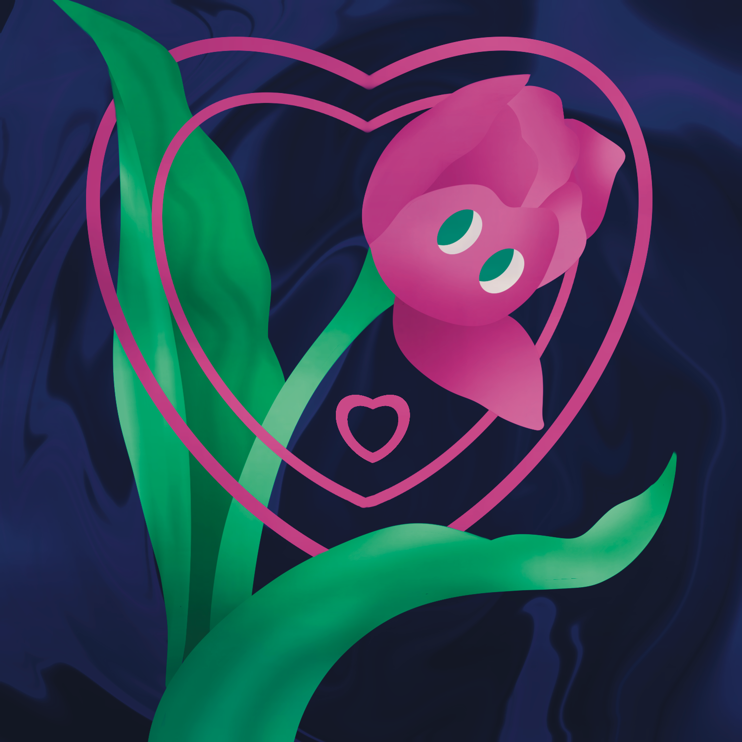 I drew a tulip, since I'm enamored by them. I used hearts to give it a cute framing effect. This tulip uses my more "cutesy" style of illustration.